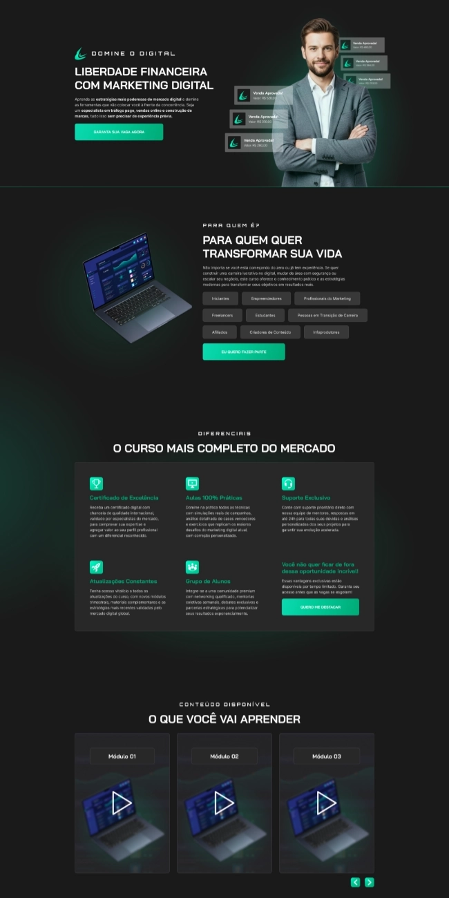 Já desenvolvi projetos, de Landing Pages a Sites Institucionais, sempre com foco em performance, segurança e resultados mensuráveis para o seu negócio dominar o digital.